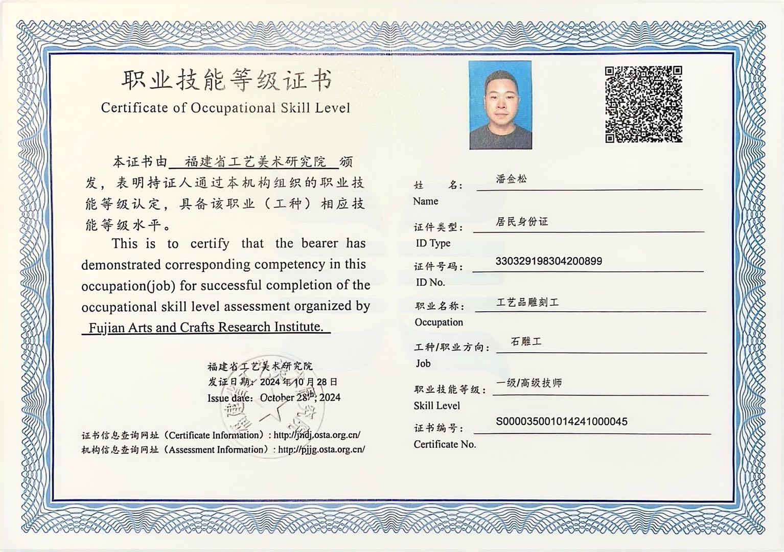 1996年开始学习雕刻,从事石雕创作20余年,擅长泰顺石雕传统雕刻技艺,师承中国工艺美术大师潘成松老师,培养了一批石雕新秀,招收泰顺县石雕艺术学校学生等。
