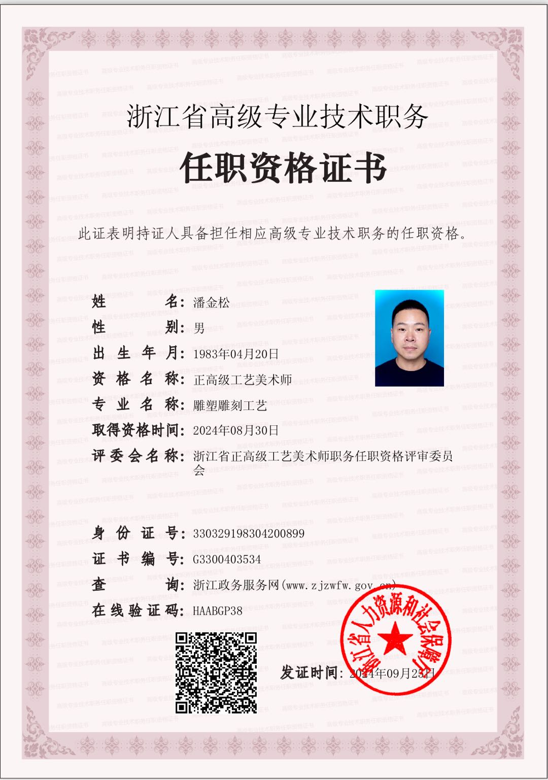 2017年被评为浙江省造型艺术青年民间工艺"新峰计划"人才。