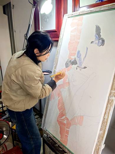 在色彩绚丽的粉彩世界里,吴燕梅的粉彩工笔花鸟画呈现出一派素雅、清淡的空灵韵味,宛如一首宋朝的小令,独具一番洗净铅华、超凡脱俗的美。