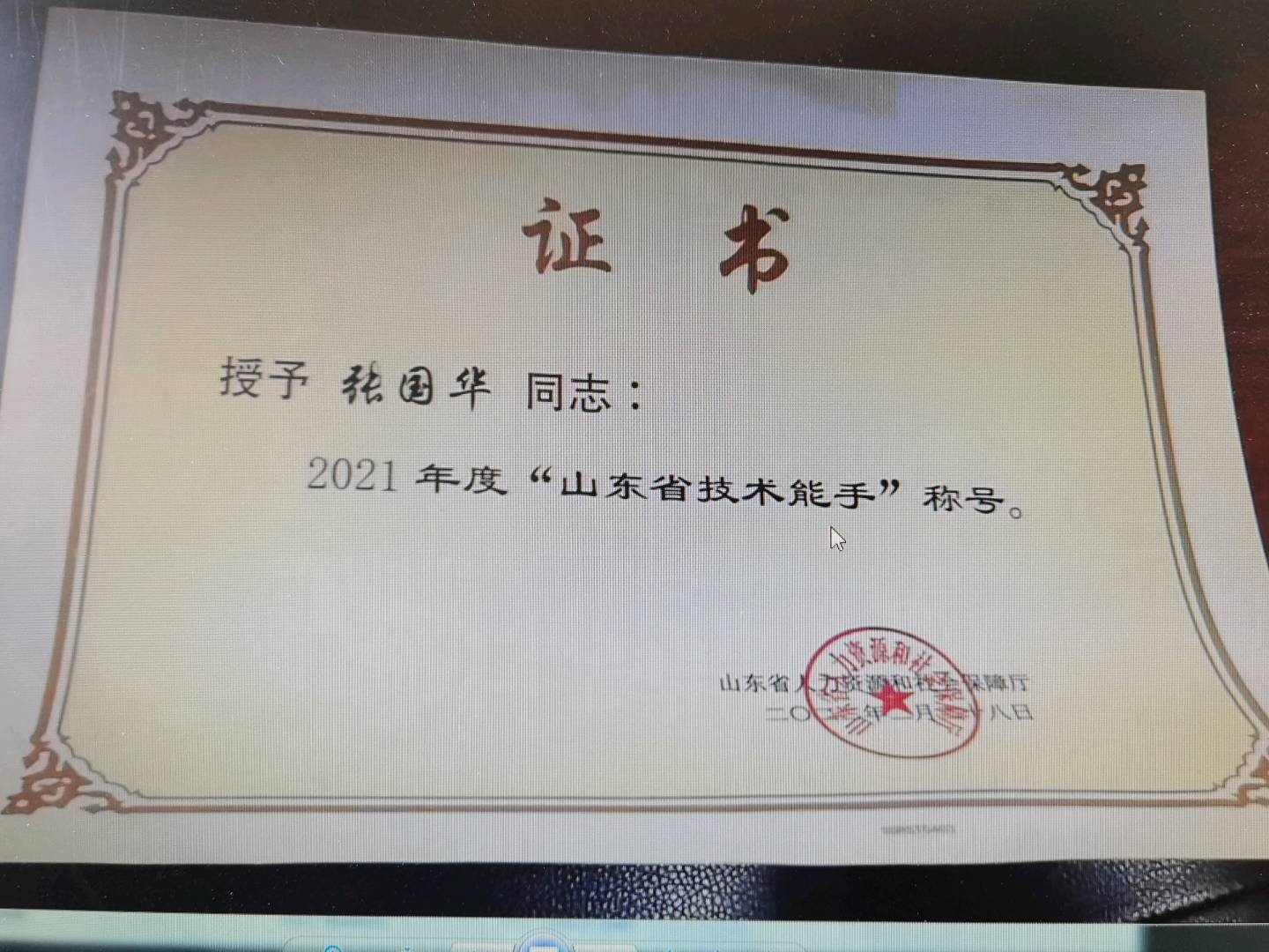 2016年被授予”山东省工艺美术行业技术能手“荣誉称号;