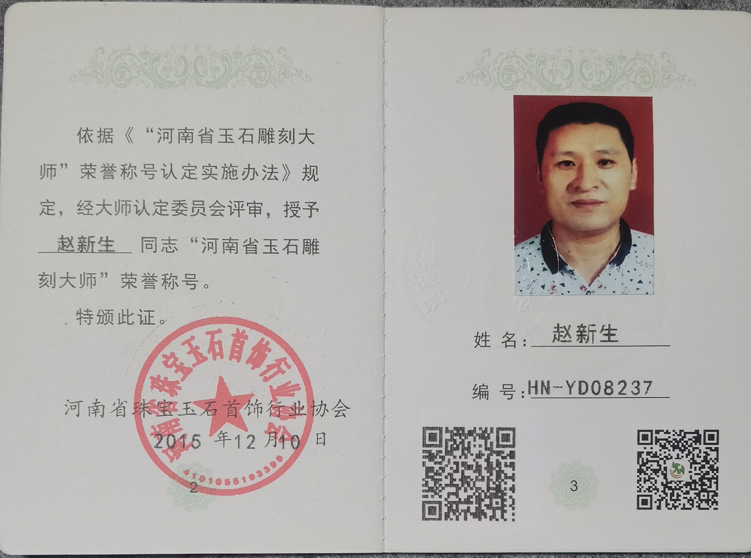 赵新生,1975年生,河南内乡人,高中毕业那年,因家庭变故,止步于大学校门之外。对此曾经迷茫过,也有过彷徨,甚至心灰意冷。后来,在其父亲的鼓励和支持下,走上了玉雕之路。