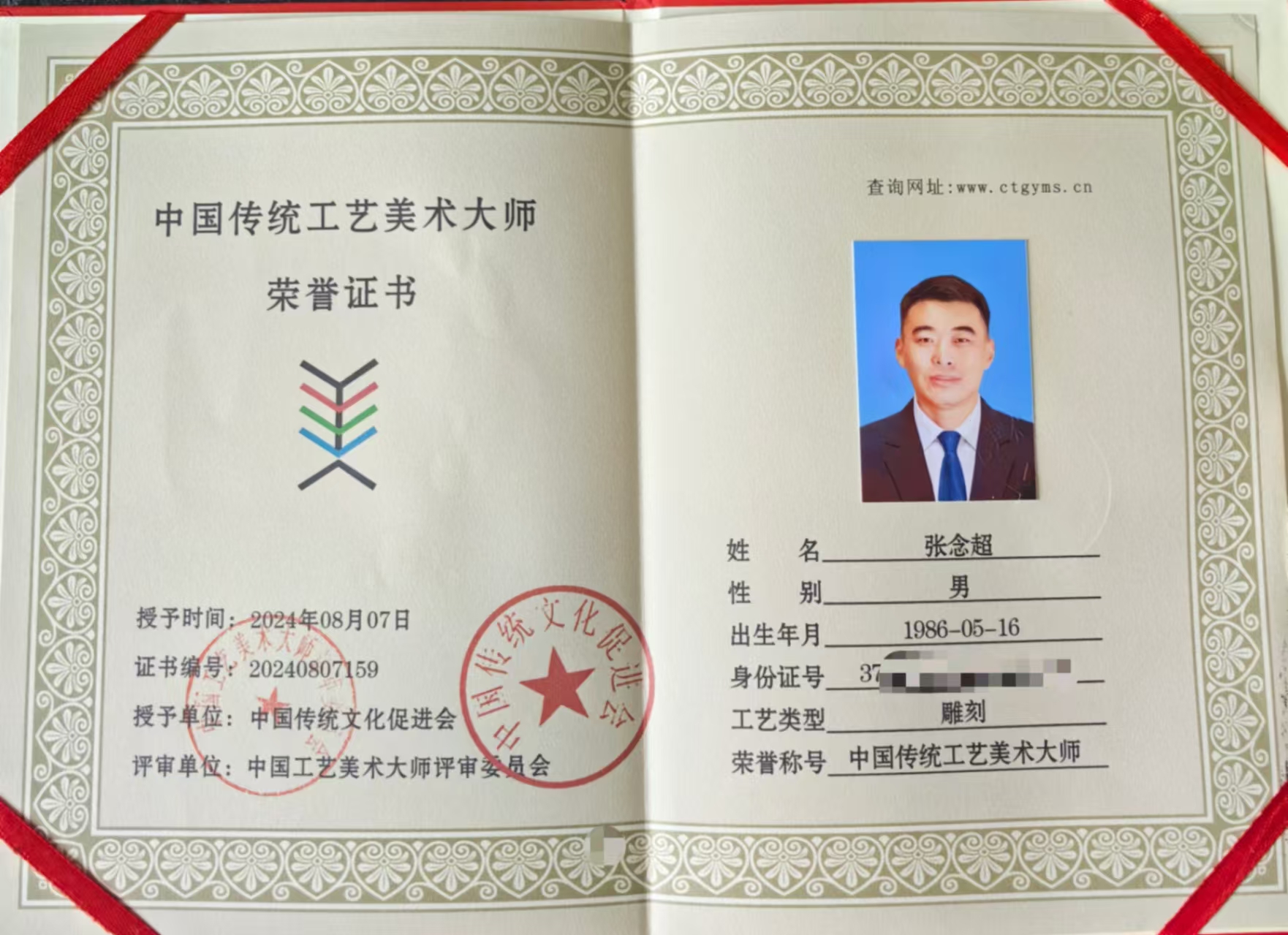2024年8月,被中国传统文化促进会授予“中国传统工艺美术大师”;