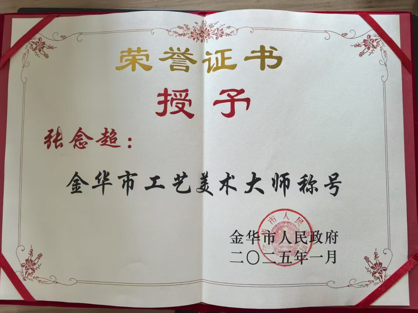 2025年1月,被金华市人民政府授予“金华市工艺美术大师”荣誉称号;