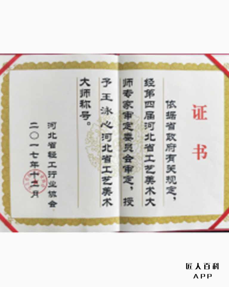 2008年石雕作品《佛性》获得“ 河北省旅游商品大赛 ” 银奖。