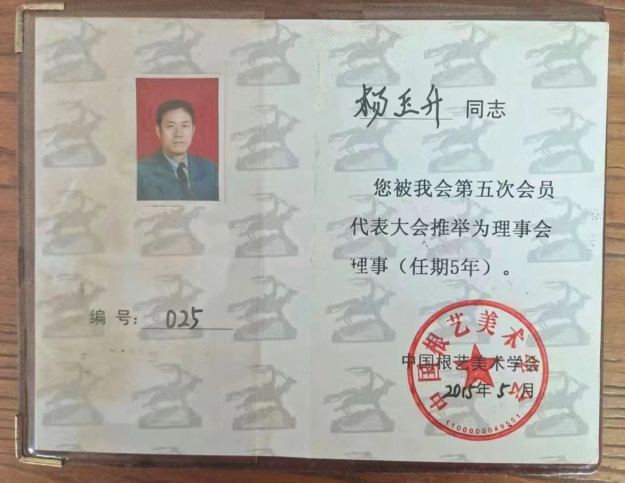 杨玉升,1954年8月出生于河南省沁阳市。自幼受家庭文化熏陶,从小酷爱美术,十六七岁时,就孤身一人到济源的东许村及王屋山一带为老人画像,因画画被招入县板纸厂工作,后调入县文化馆美术创作组。其后多辐国画山水作品参加新乡地区和焦作市美协举办的展览并获奖,27幅漫画作品发表在诸多报刊杂志上,工笔画《小当家》83年入选河南省第二届农民画展。之后,因工作原因,停止了美术创作,利用业余时间坚持根艺创作。