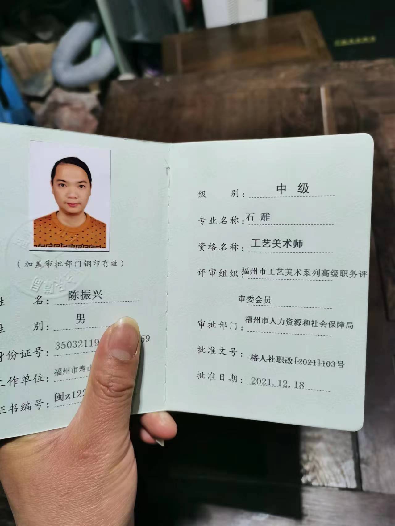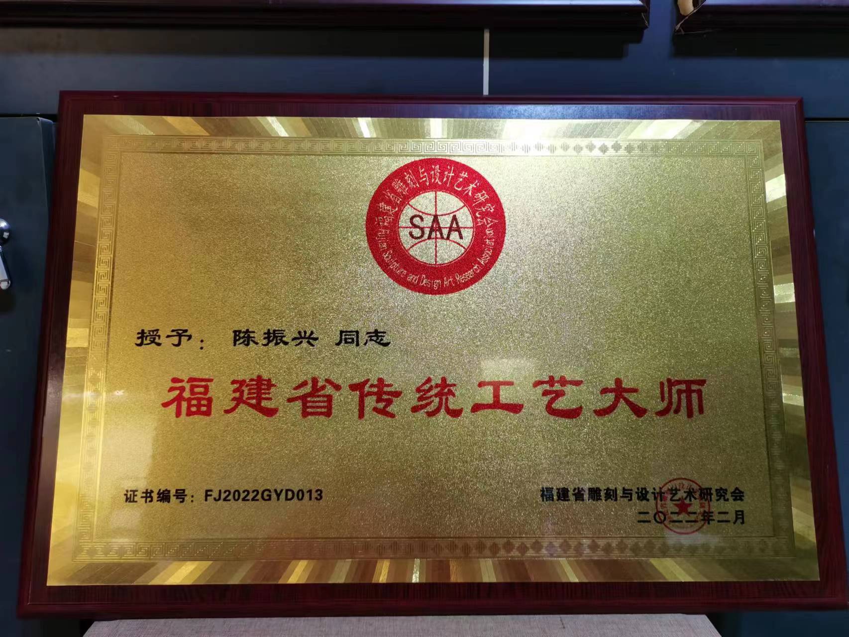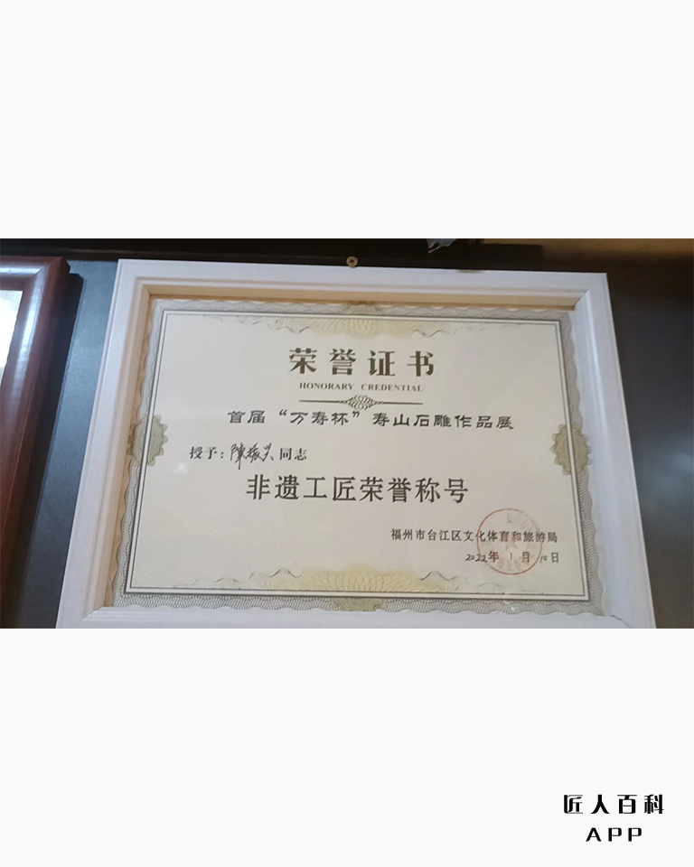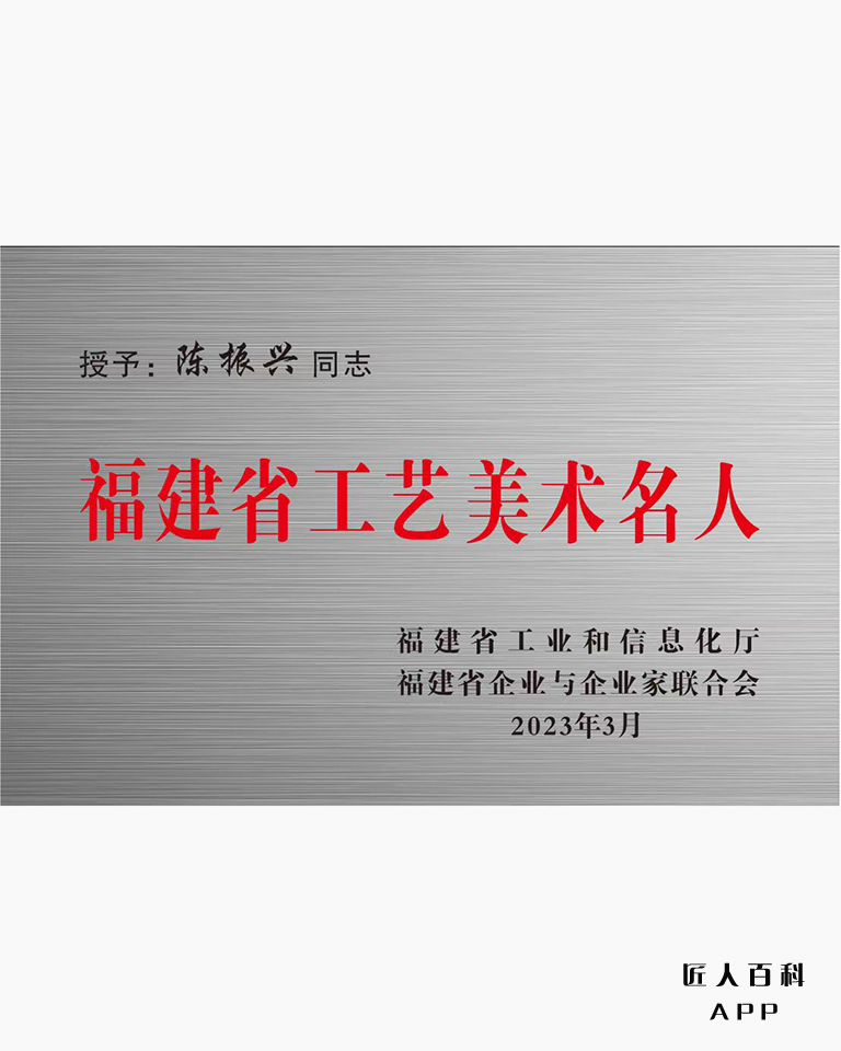 2023年03月12日在福建省福州市被评为“第六届福建省工艺美术名人”的荣誉称号;
