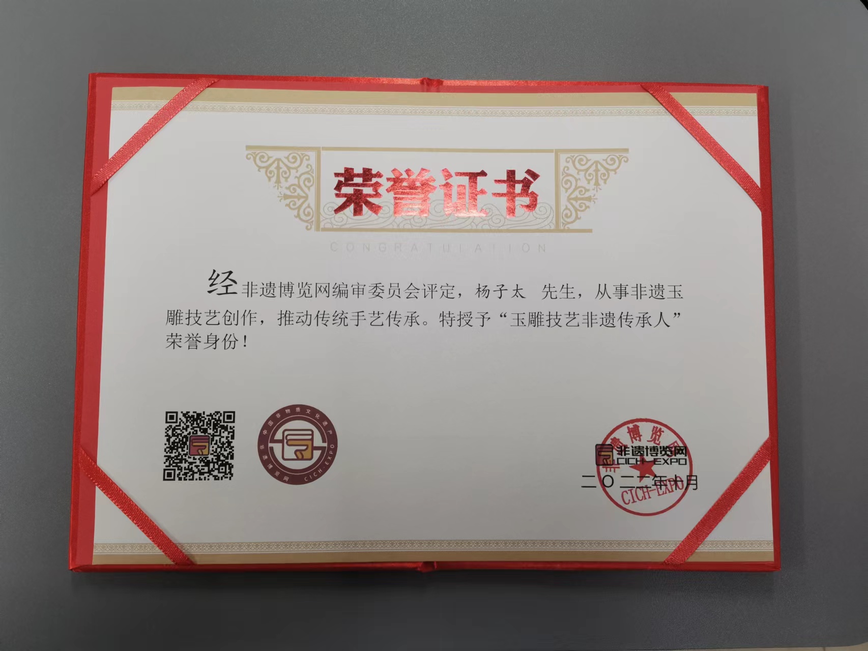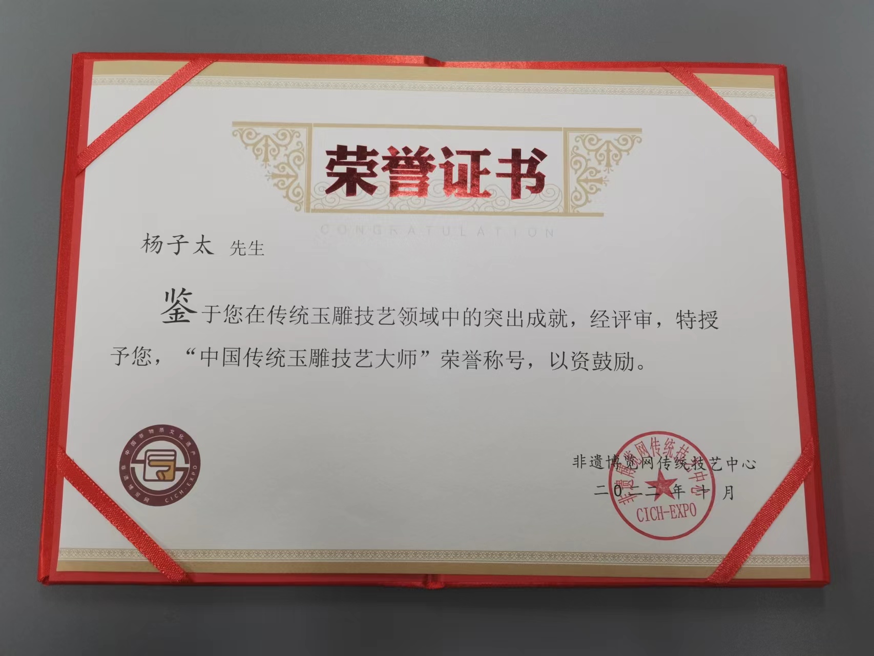 2013年被授予“云南省玉雕大师”荣誉称号。