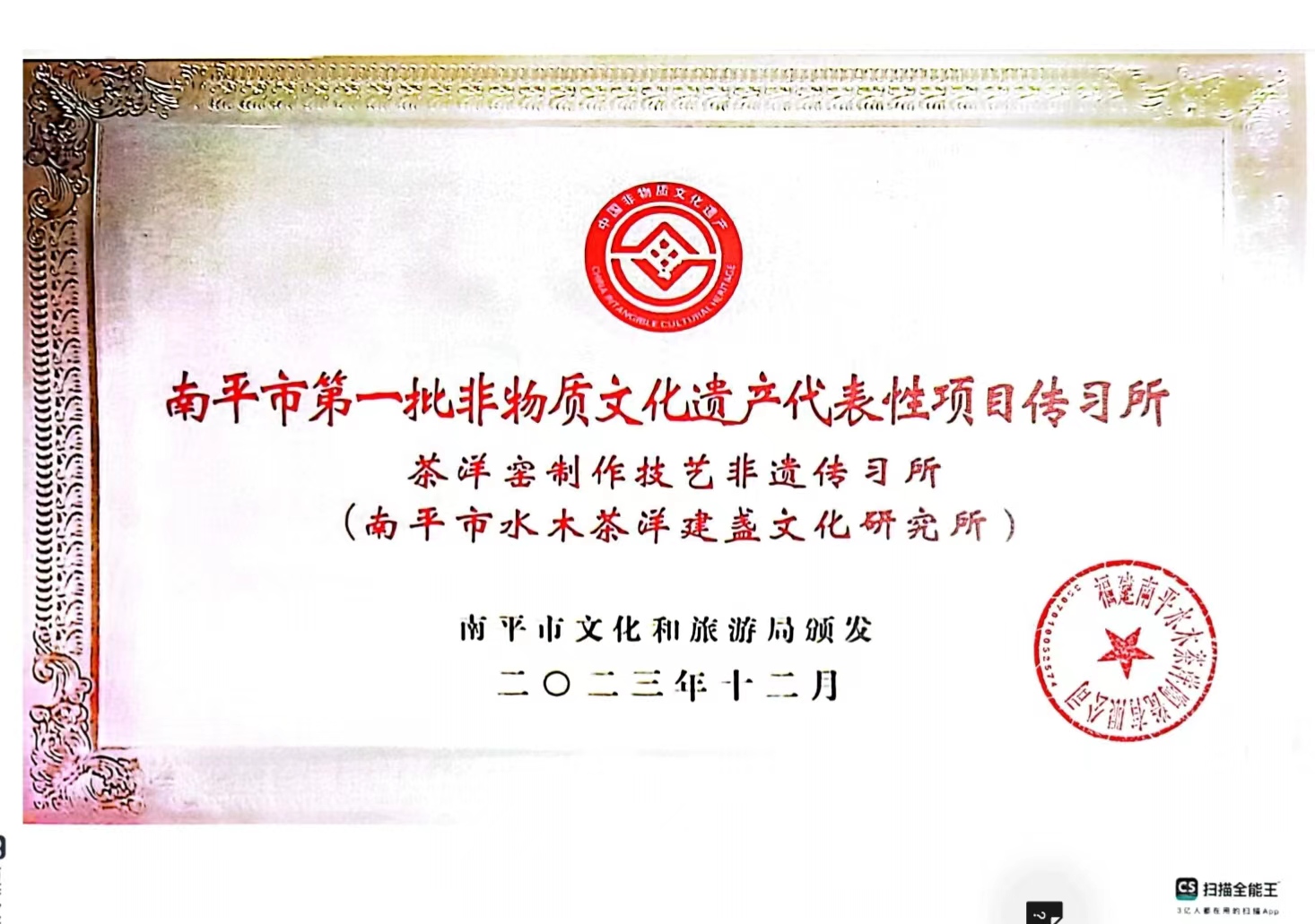 2017年11月 “南平市水木茶洋茶盏文化研究所”任所长;