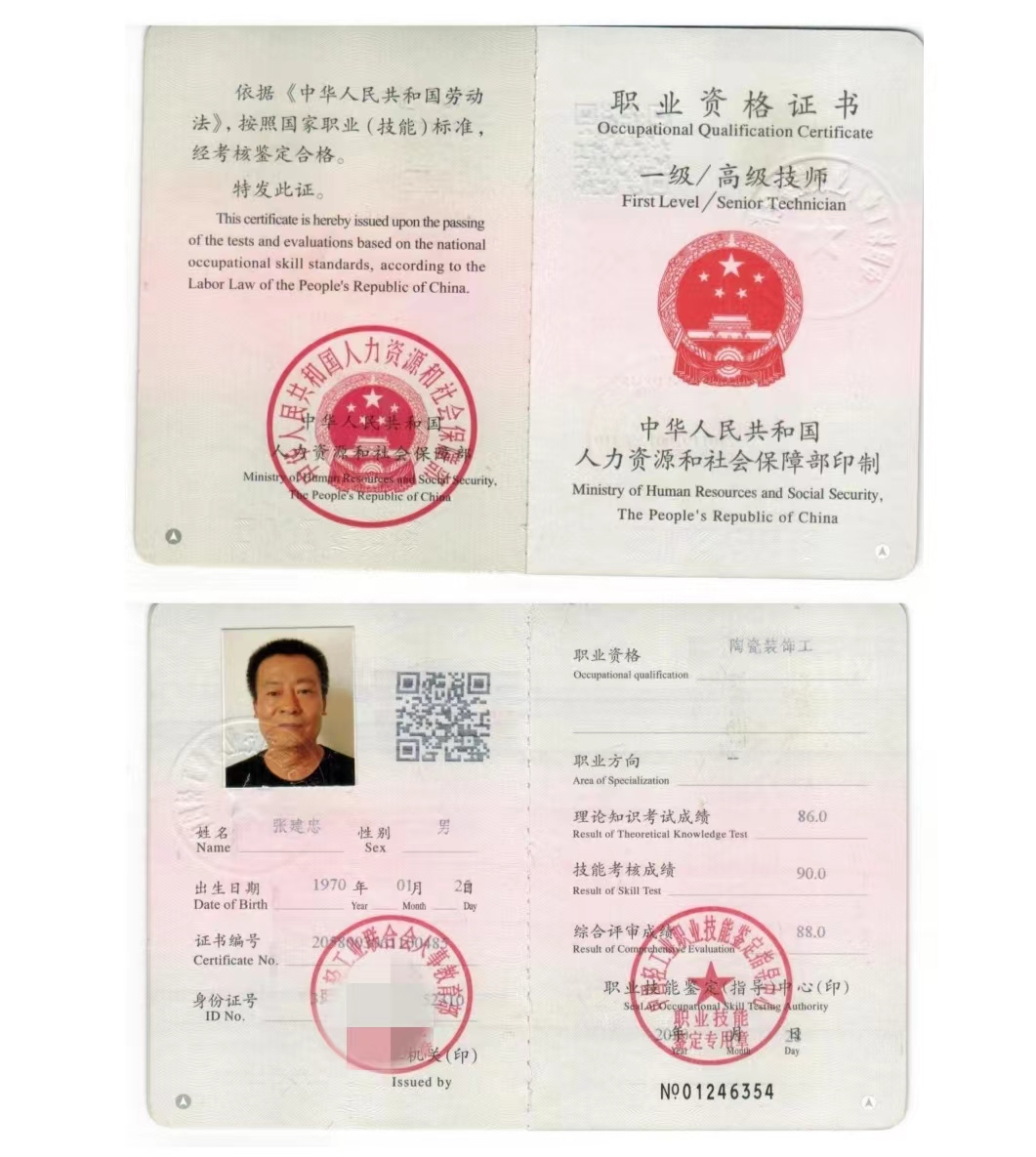 、 高级技师(一级)陶瓷装饰工