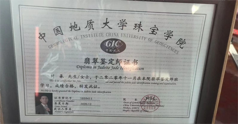 2020年11月,以优异的成绩考取高级“翡翠鉴定师”从业证。