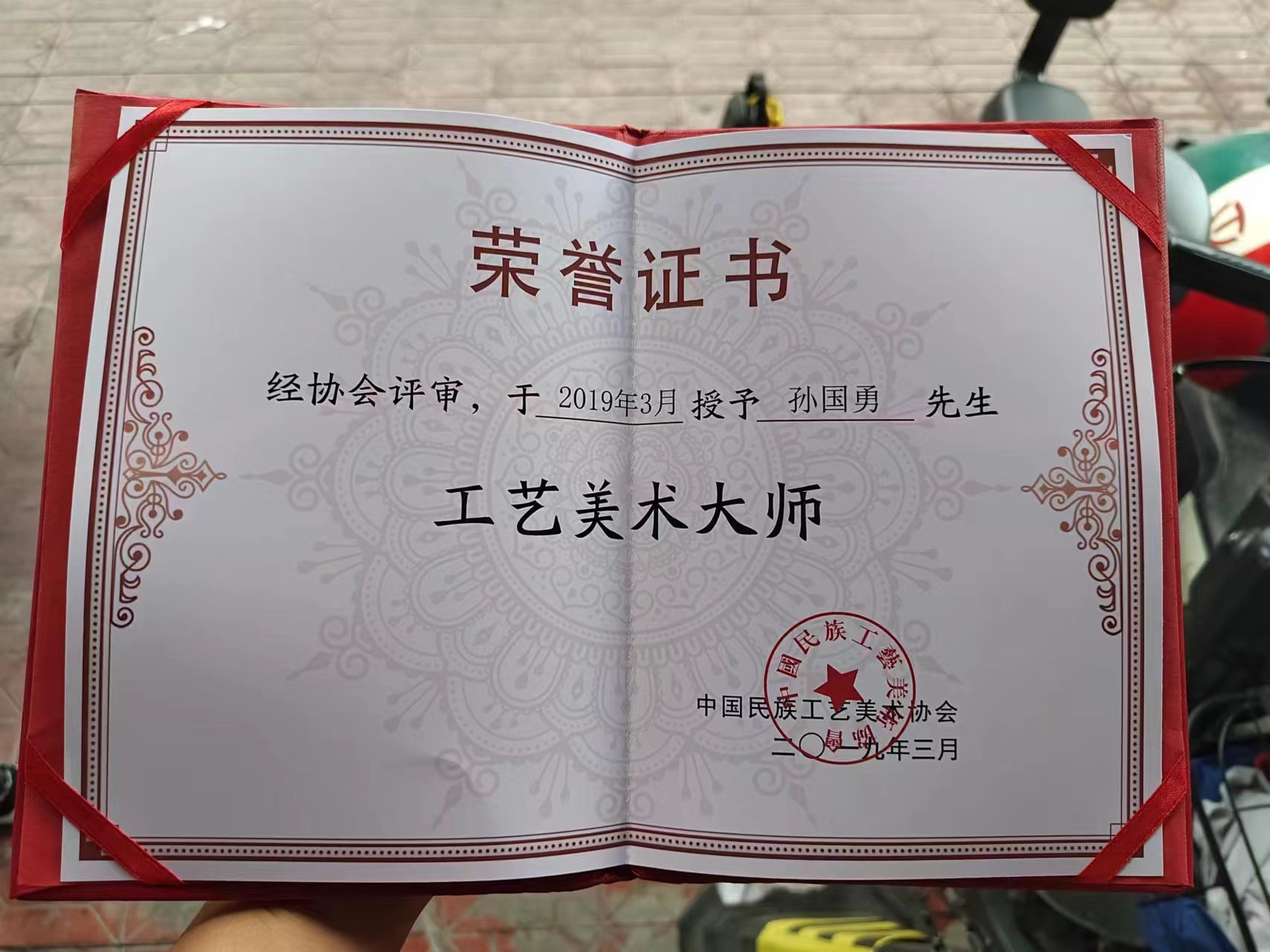 作品 《马到功成》获得珠三角玉雕精品展“工匠杯”金奖;