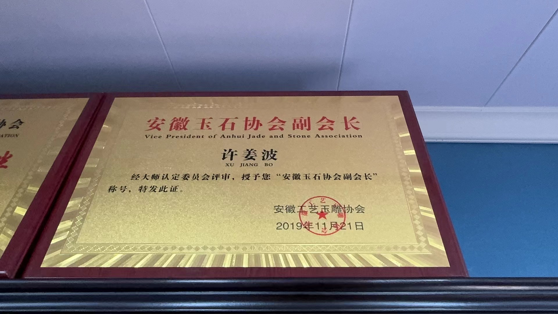 许姜波,安徽玉雕协会副会长。2015 年至 2017 年,于安徽江淮工业学校任职,在此期间,荣任学校玉器雕刻绘画首席导师,致力于培养相关领域的专业人才。2020 年,有幸在佛教重地九华山拜九华书画院主持(释演一)为师,成为其俗家弟子,获赐法号“释道信”,自此开启了修行与艺术交融的全新人生篇章。