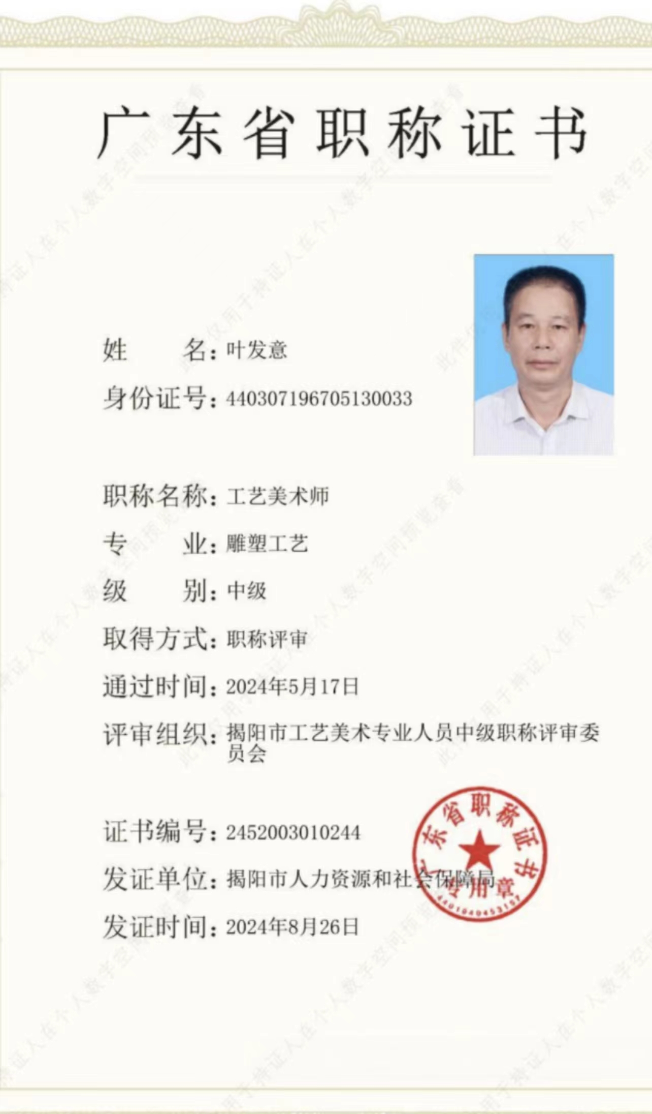 叶发意,自小对石头有着独到的喜好,喜欢收藏一些奇石,退伍后自学石头雕刻技艺,2010年对茶壶的制作进行石头雕刻,后专心研究石头茶壶雕刻和壶型的设计。
