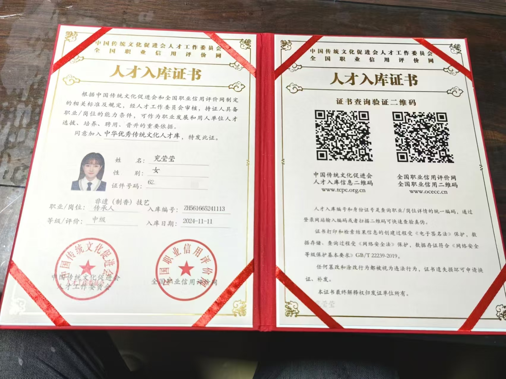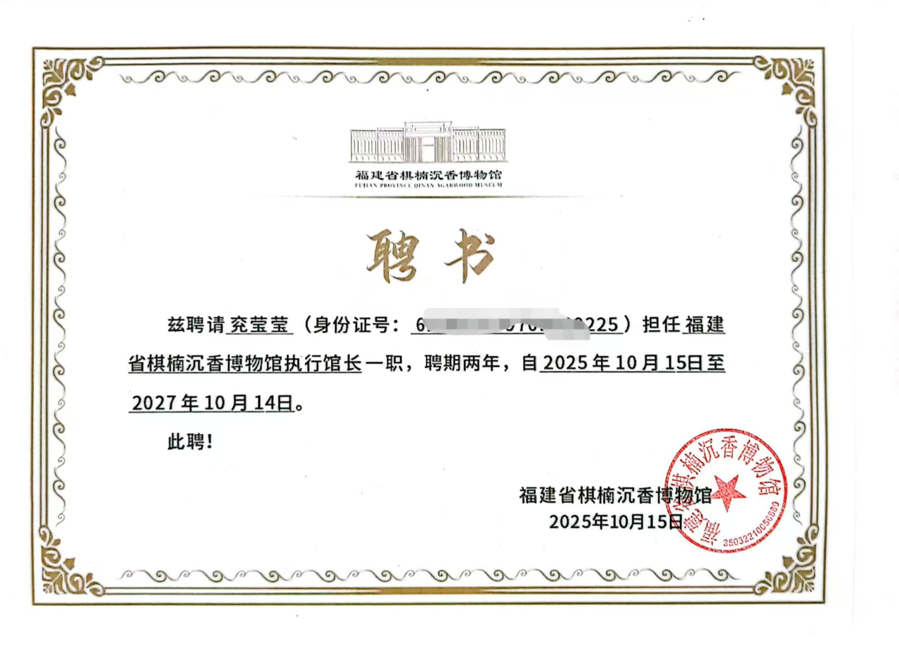 兖莹莹,女,1997 年诞生于甘肃省庆阳市。身为沉香制香师与收藏家,她出身于制香世家。自幼,便在长辈的耳濡目染下,沉醉于制香与品香的天地。传统技艺散发的独特韵味,如强力磁石般牢牢吸引着她。从香料的精挑细选,到细腻研磨,再到最终完美成型,每一个步骤她都凭借精湛技艺严谨处置。历经多年持之以恒的摸索与实践,她成功研发出独属于自己的制香工艺技术。2013 年,云隐香事工作室在她的不懈努力下正式成立。时光匆匆,来到 2024 年,兖莹莹荣获非遗制香技艺传承人这一荣誉称号。作为年轻的制香师,她毅然肩负起非遗传承的重任,让古老的传统制香工艺在她的手中焕发出崭新光彩,得以延续与创新。