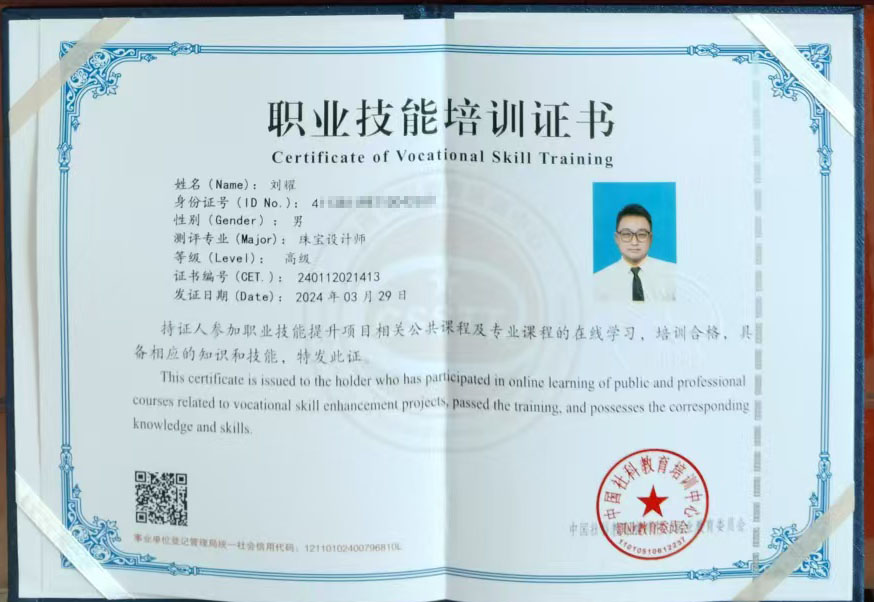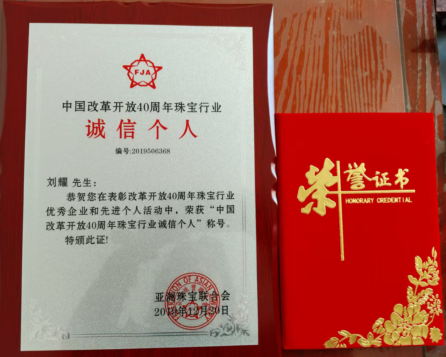2023年12月份,被亚洲珠宝联合会评为“诚信个人”荣誉称号。