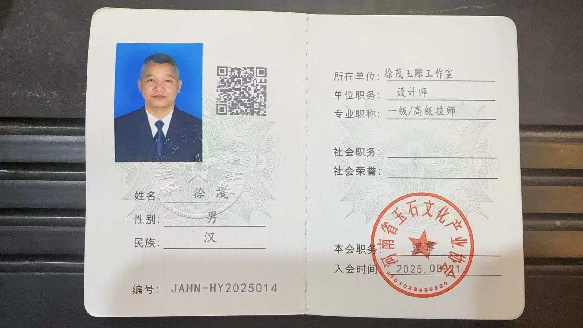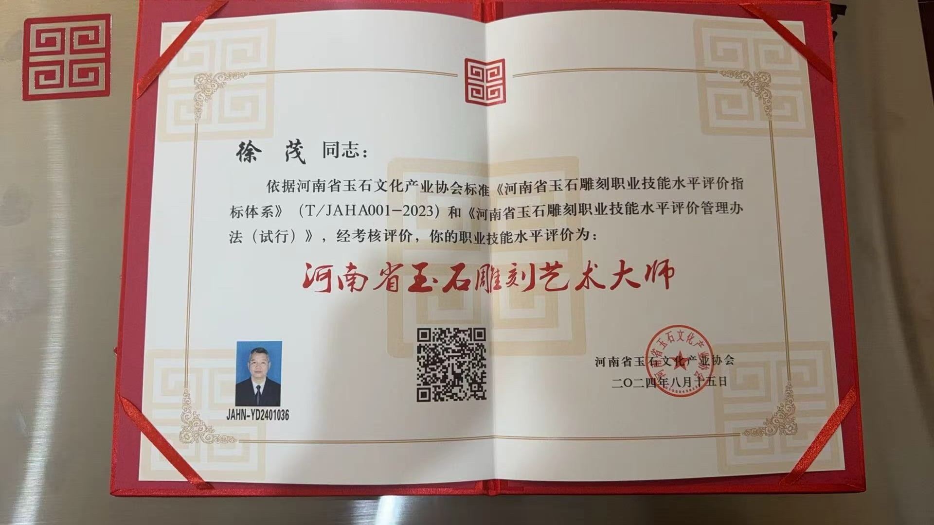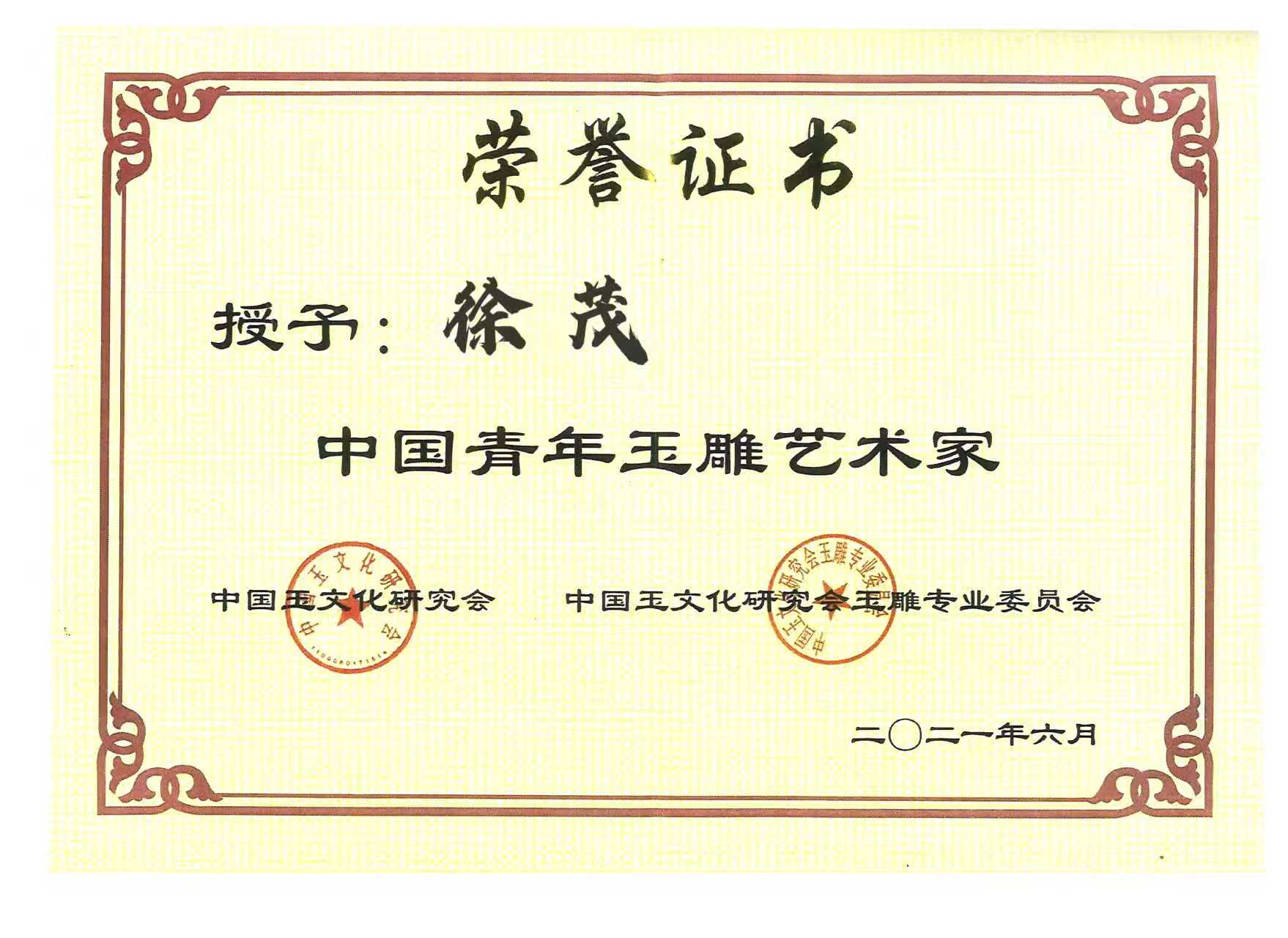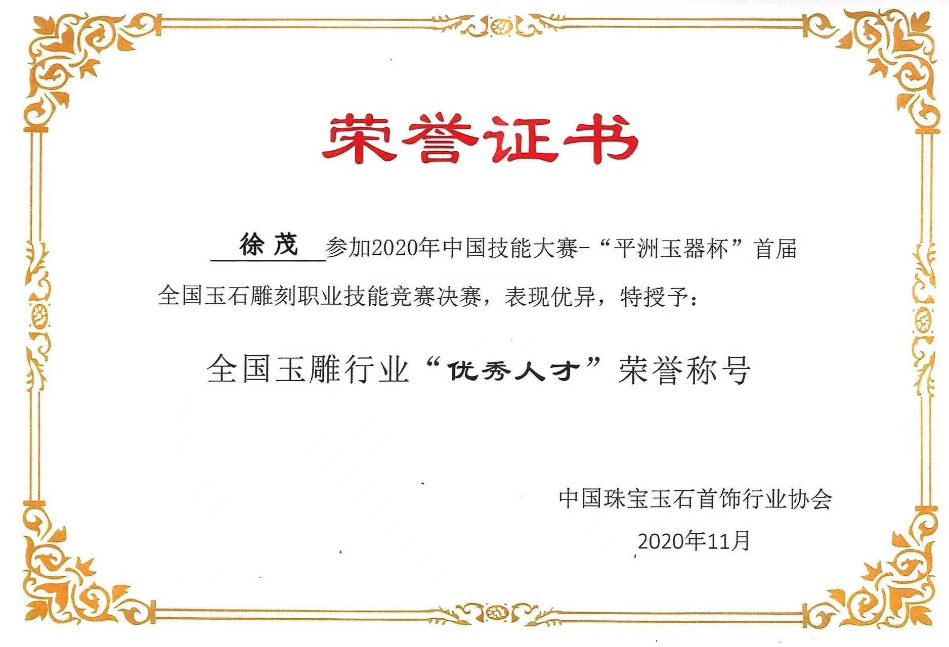 、 全国玉雕行业“优秀人才”