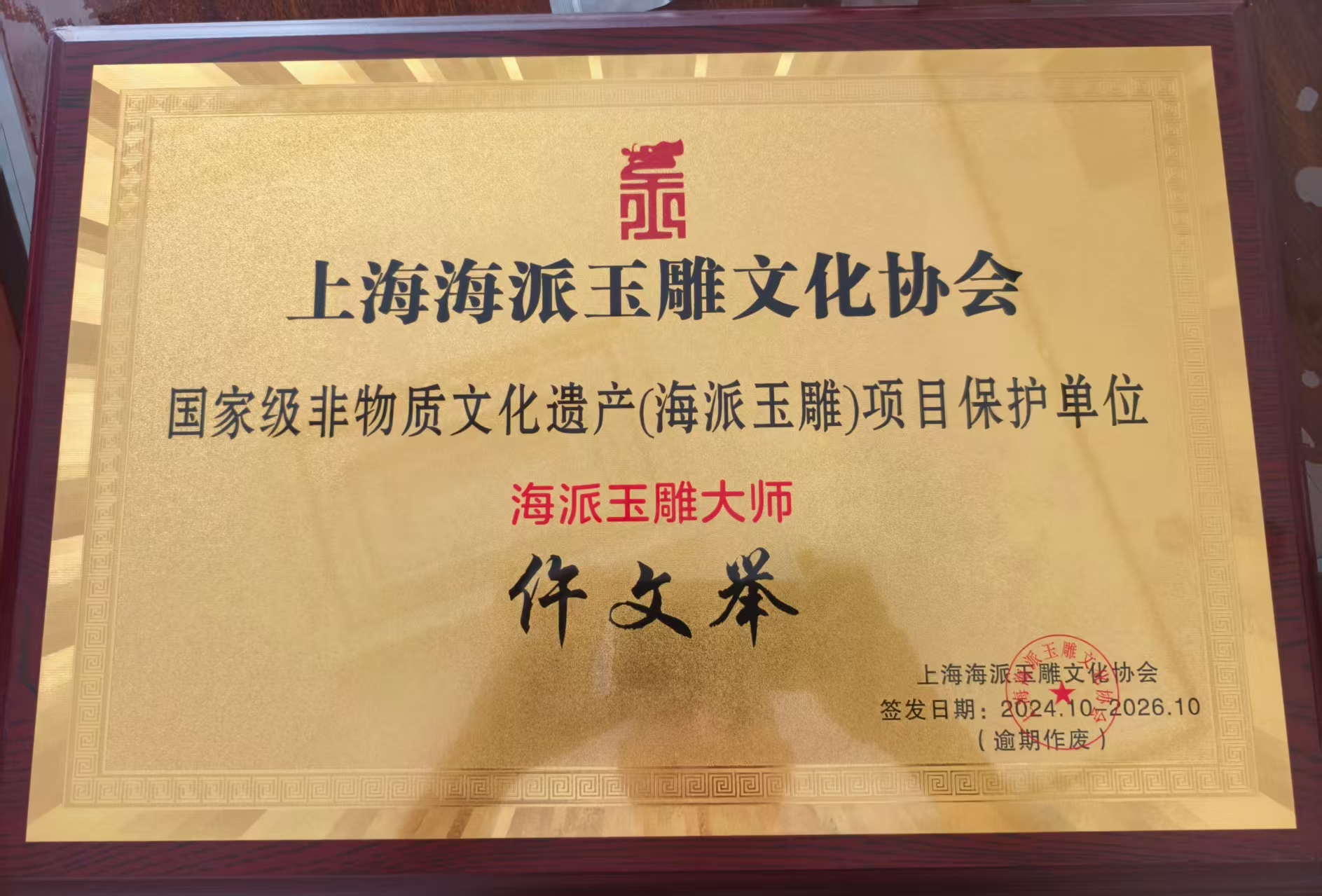 2024年参加上海国家级非物质文化遗产项目,海派玉雕暨第十八届神工艺术大展,作品《佑护》获得银奖。