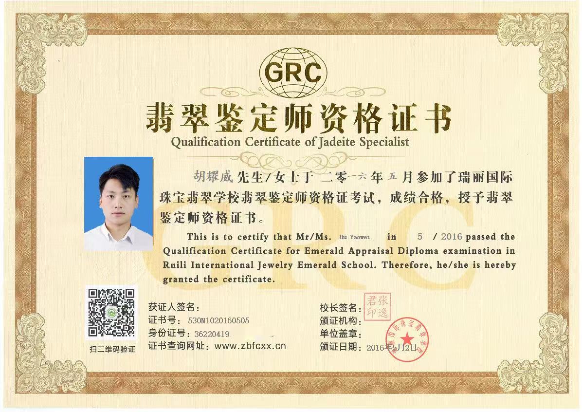 胡耀威,出身于江西。从小就对玉石很感兴趣,喜欢研究,2012年机缘巧合下接触到翡翠行业,刚开始没有任何经验,为打下坚实基础,先后在玉雕厂、切料厂、毛料市场边工边学,历经波折,也没有让他心生退意。