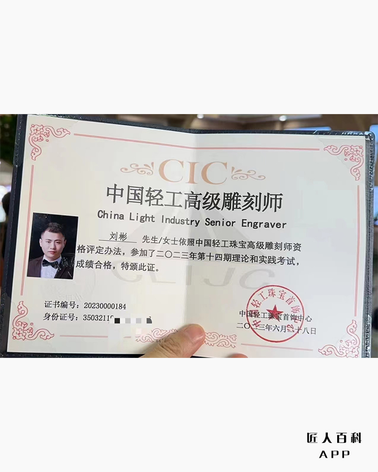 2022年:作品《龙凤呈祥》对牌荣获中国玉雕界最高奖项“天工奖”金奖,标志着其艺术成就获得业内顶尖认可;